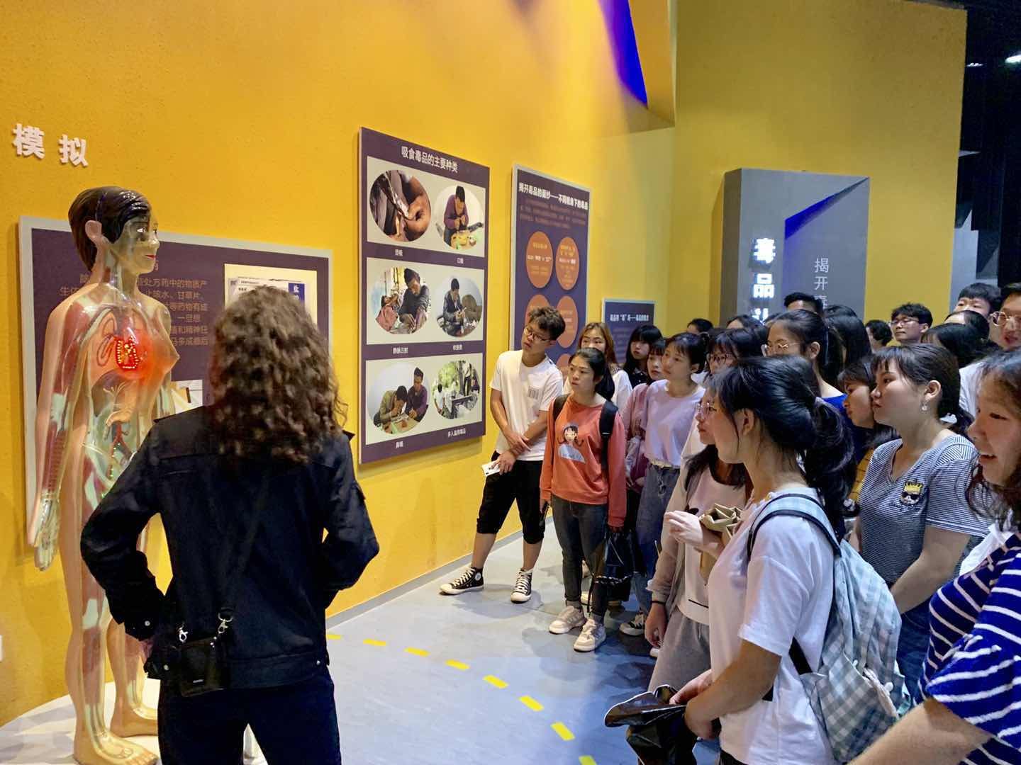 在禁毒宣传教育基地和戒毒所,师生们参观了禁毒教育展览室,戒毒康复人员的学习室、宿舍,“运动戒毒”体能训练现场以及康复人员经教育转化后学习、劳动取得的成果,并观看了戒毒所根据真实事件拍摄的禁毒宣传教育微视频和戒毒康复人员自编自演的警示教育节目。在参观过程中,师生们通过鲜活的事例切身体会到毒品对一个人、一个家庭乃至整个国家、社会的摧残和损害,在感慨误入歧路人员可悲命运的同时,也深感国家严厉打击吸毒贩毒违法犯罪的法律威严、坚强决心和强有力手段,感受到青年大学生肩负的社会责任以及致敬干警们为挽救吸毒人员重拾生活信心,立志回归社会做出的艰辛努力。