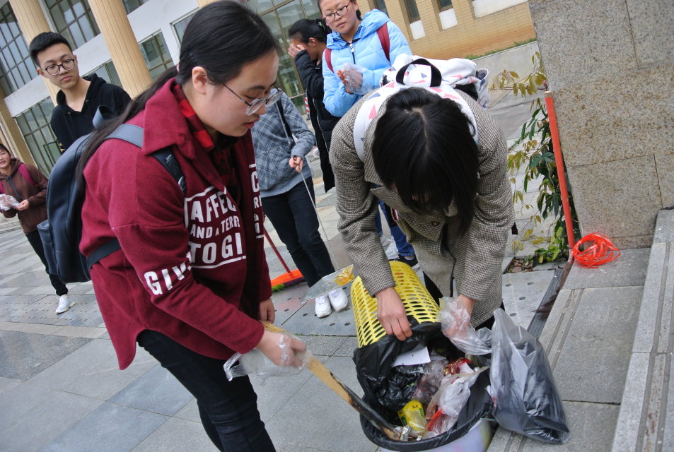 活动伊始,由必威BETWAY西汉姆联学生会分团委副书记罗棋介绍此次活动的内容及其目的,并将学生会成员按部门分为4个小队,携带清除工具,在各自负责的区域里一丝不苟地清理垃圾;同时,宣传部成员把制作好的绿化提示牌安置于合适的位置,引人深思的温馨提示,让每一位同学在行走的过程中不断加强“保护绿化,爱护环境”的意识。历经两个小时的认真清扫,以喷泉广场为中心的周围绿化带有了全新的面貌。