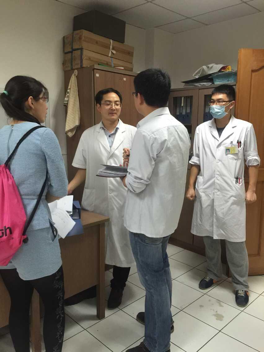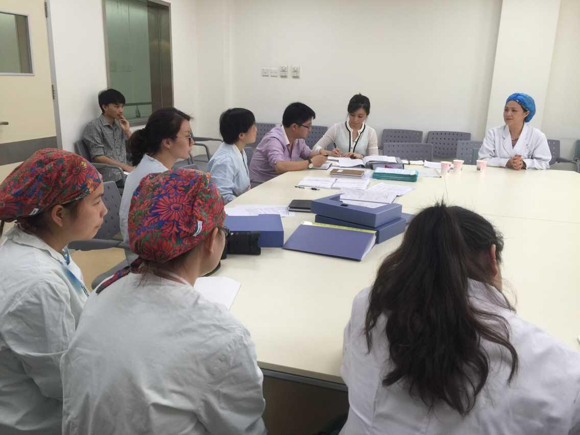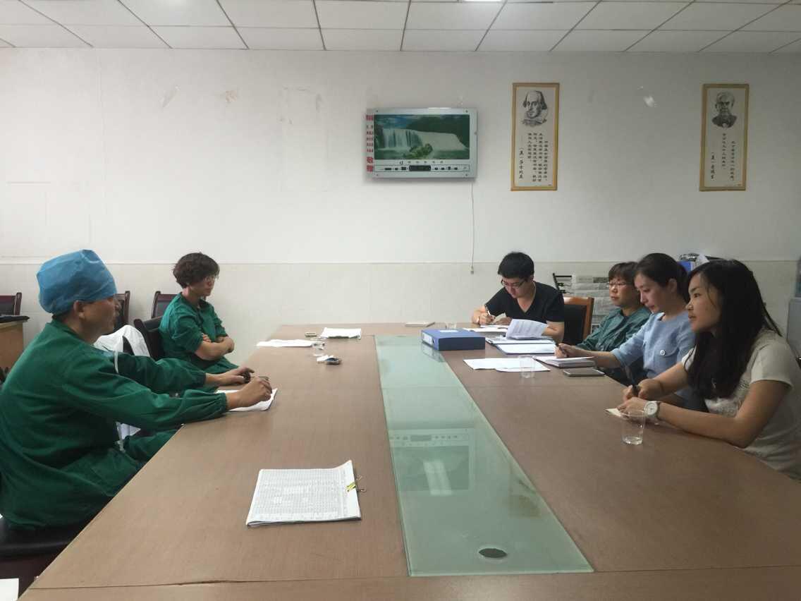 6月5日,文老师一行先后走访了贵医附院肝胆外科、泌尿外科、胸外科、疼痛科、神经内科、呼吸内科、心血管内科、麻醉科和麻醉ICU等科室,就学生在病历书写、教学查房和病例讨论、教学讲座、出科考试、实践操作和实习表现等六个方面的情况分别向各科老师进行了了解,并查阅了学生书写的完整病例和教学讲座记录、出科考试试卷等资料。