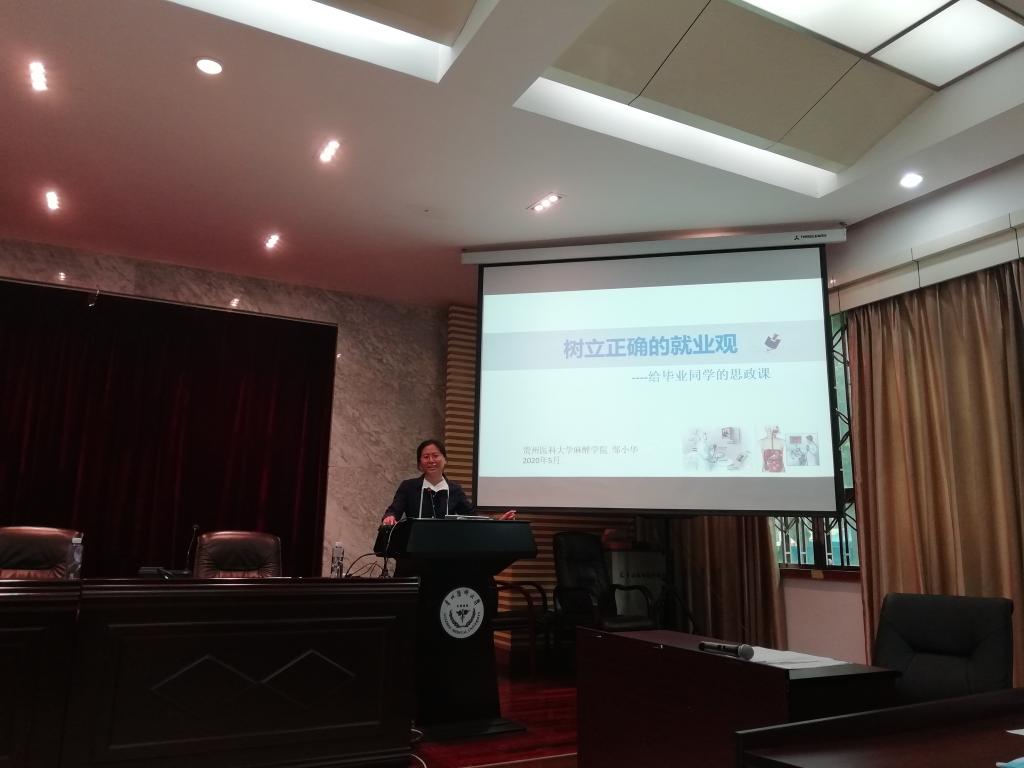 为进一步推进我院毕业生就业工作,帮助同学们树立正确的就业观。5月19日,必威BETWAY西汉姆联2015级麻醉班全体同学于北校区道德讲堂举行复学第一课——“树立正确的就业观”,由副院长邹小华讲授。院党委书记李宏伟、副书记黄兰、副院长曾祥刚,毕业班辅导员与全体同学一同参与。