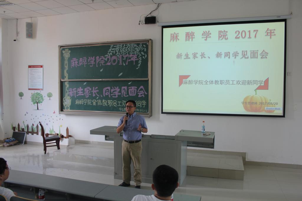 必威BETWAY西汉姆联来自省内外的134名新生,告别高中,带着新的希望启航;踏入BETWA西汉姆联,续写新的青春篇章。8月20日下午14:00,我院于7607教室召开了“2017级麻醉新生见面会”会议,到场的嘉宾有必威BETWAY西汉姆联党委书记刘建华,院长高鸿,综合办公室主任何为,辅导员周霁、徐青,班主任李文谦以及2017级新生家长和新生。