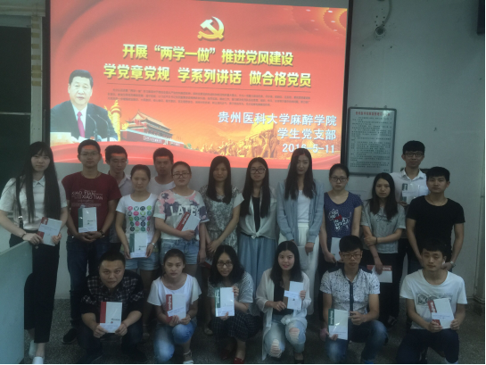 学生党支部书记周霁同志就学生党支部开展“两学一做”学习教育作了具体部署和安排。要求全体学生党员干部要统一思想,提高认识,以“三评估两认证”为抓手,深刻领会“两学一做”学习教育的重大意义,切实落实好“手抄党章100天”及“两学一做”学习教育征文活动,自觉把思想和行动统一到学校部署要求上来,增强学习教育的自觉性、主动性,确保学习教育有序开展。周霁要求:党员一要加强党章党规的学习,提高党性修养;二要加强理论学习,重视学以致用;三是要坚定信念、争当先锋,做好模范带头作用,努力争做讲政治、有信念、有规矩、有纪律,讲道德、有品行,讲奉献、有作为的合格党员。