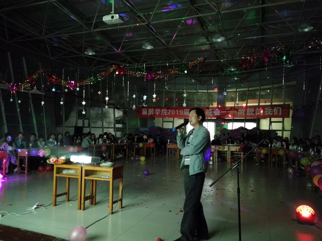 其间,还播放了全体学院老师,麻醉科老师及2017,2018级同学对毕业生的祝福视频,饶立以一个师长的身份讲诉自己的经历,激励同学们要奋进踏实,勿忘初心,立志成长为一名优秀的麻醉医生;学弟学妹们特意在学姐学长曾经上课的教室、自习的图书馆发来毕业祝福,全体同学纷纷泪目。龙安娜同学带领全体毕业生唱响《青春纪念册》,将晚会的气氛推向高潮。晚会最后,毕业蛋糕被推到会场中央,三个蛋糕上面用巧克力铺满了全体2019届毕业生的名字,大家纷纷上前许下大学时光里奔上征程的最后一个心愿。