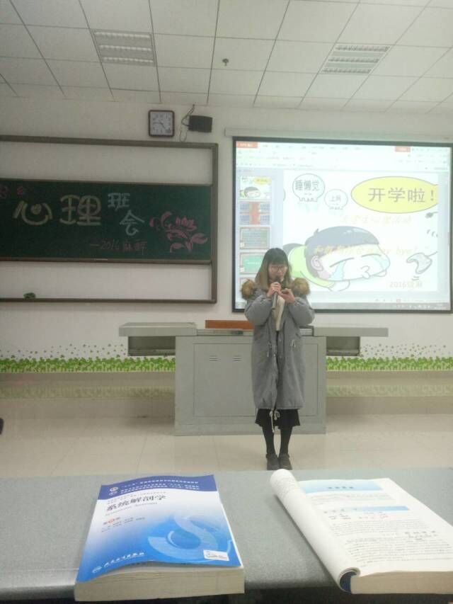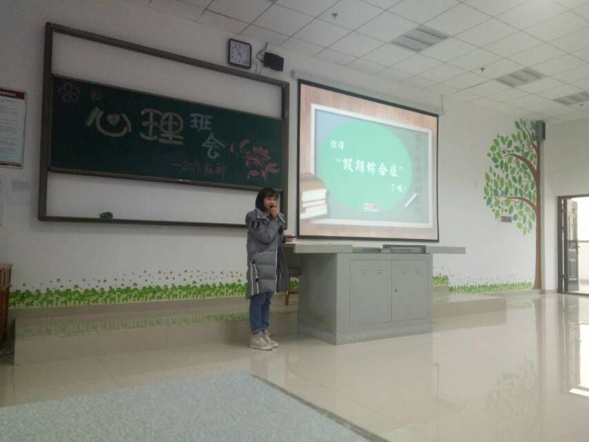 心理委员胡海琳同学用PPT对假期综合征进行了讲解,阐述了假期综合症产生的原因,表现等,给出了如何尽快去除“假期综合症”的方法及合理化建议。