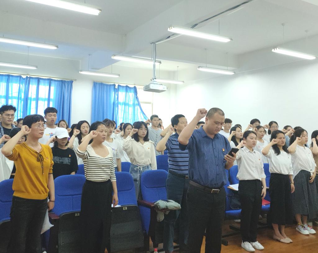 会上,李宏伟带领全体师生党员重温了入党誓词。一句句铿锵有力的声音传达出身为共产党员的自豪感、责任感和使命感。增强了党性观念,重忆了入党初心,坚定了理想信念。