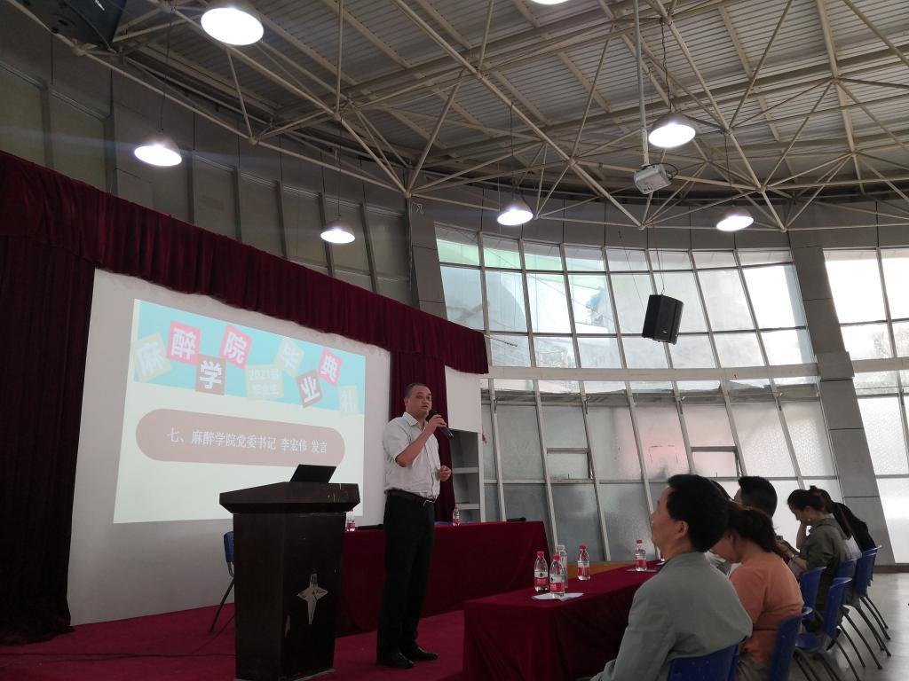 最后党委书记李宏伟发言,毕业典礼是毕业生安全文明离校教育工作的重要环节。代表全体师生向毕业生表达祝贺,同时感谢毕业生们把自己最值得怀念的青春洒在贵医这片热土上,为学院赢得无数荣誉,促进了学院的建设和发展。并鼓励毕业生们:认真生活、热情工作、沉淀自我,做奔赴山海的追光青年;在母校发展史中塑造品格,厚植情怀,做游刃有余的斜杠青年;在党的奋斗史中汲取智慧,发愤图强,做建功立业的热血青年。希望毕业生在这个全新的时代中挥洒青春热血,带着母校的祝福,满怀信心、开疆拓土、建功立业。