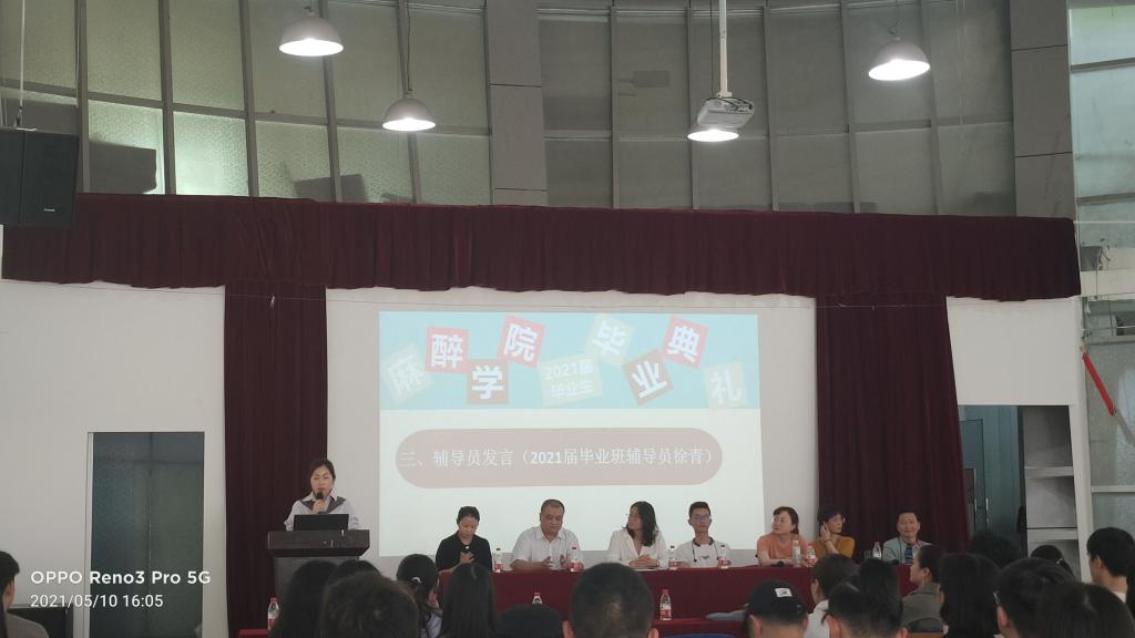 毕业班辅导员徐青对学生深情发言:五年的青春时光,我们彼此已成为生命中珍贵的记忆。见证了你们从青涩懵懂到干练沉稳,与你们一同收获成长。大学毕业不是人生学习的终点,而是终身学习的起点,请大家时刻谨记“诚于己、忠于群、敬往思来”的校训,不忘初心,砥砺前行。以青春之我、奋斗之我,为民族复兴铺路架桥,为祖国建设添砖加瓦。