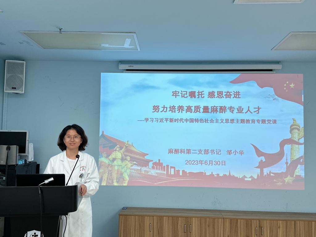 为深入开展学习贯彻习近平新时代中国特色社会主义思想主题教育,6月30日,必威BETWAY西汉姆联院长、附属医院麻醉科第二党支部书记邹小华以《牢记嘱托感恩奋进努力培养高质量麻醉专业人才》为题,为麻醉科第一、第二党支部全体党员上专题党课。