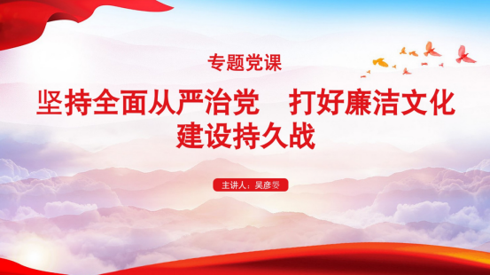 7月1日,院党委副书记吴彦嫢在腾讯会议为教工党支部、学生党支部党员代表讲授题为《坚持全面从严治党打好廉洁文化建设持久战》专题党课。