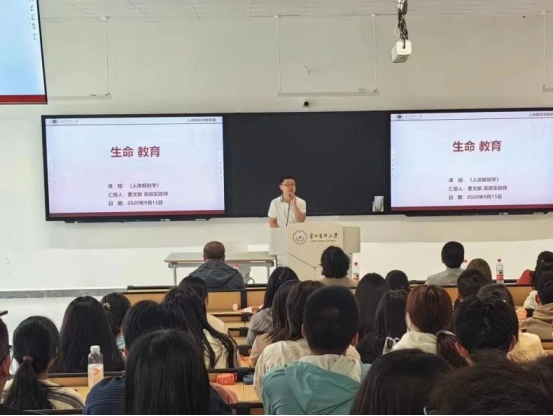 课中,曹文鹏老师用风趣幽默地语言讲解了人体的九大系统,从细胞、组织、系统诠释了生命的意义,注重理论和生活相结合,教育同学们要珍惜生命,热爱生活。