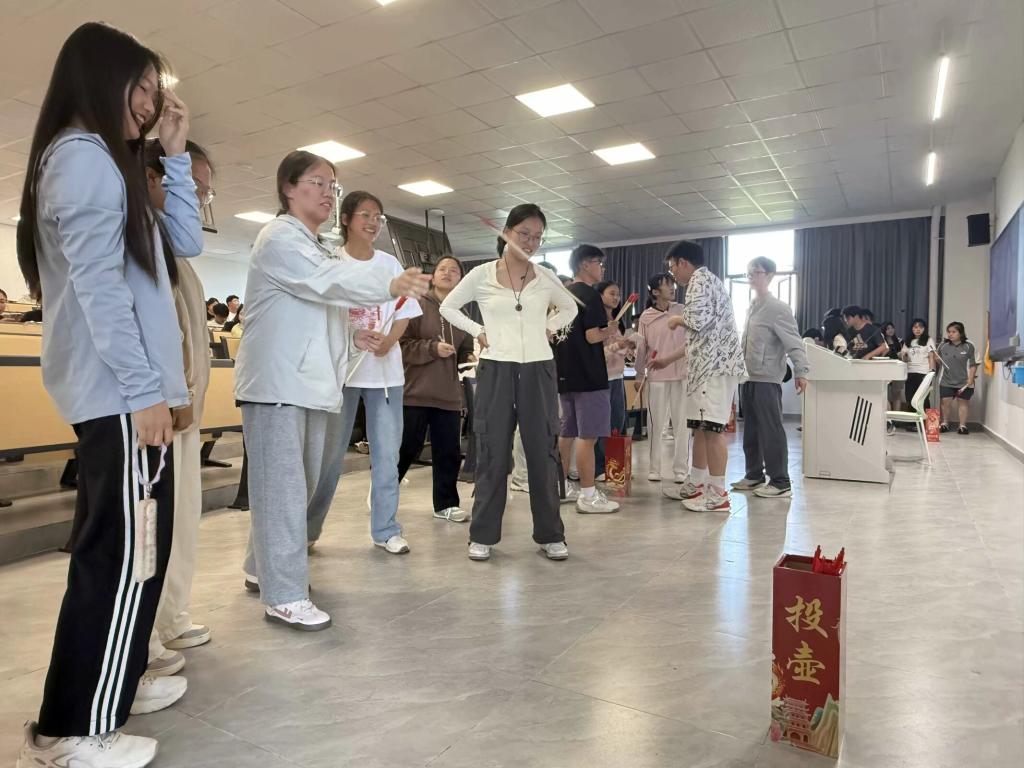 活动策划了三个心理互动的游戏:“先己后人”游戏中大家体悟到只有调整好自身状态才能更好助人协作;“寻找灵魂画手”游戏中强化团队协作的意识,同时增强了同学之间的信任;“投壶大比拼”游戏中同学们各展身手,现场溢满了加油声和欢笑声。