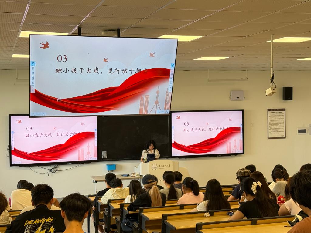 最后,全体学生以“青春誓言,迈向新征程”环节来凝聚共识。同学们结合自身专业与理想,发出青春宣言:“以专业能力筑牢报国根基,用实干担当践行使命承诺”“扎根基层一线,助力乡村振兴,为共同富裕添砖加瓦”……铮铮誓言中,彰显了青年学子将个人理想融入国家发展大局,以青春之我建设现代化强国的坚定决心。